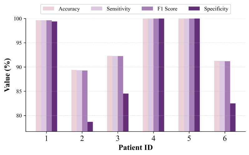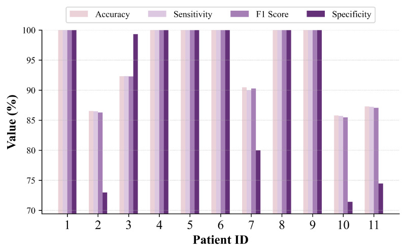图5. 从CHB-MIT到JHMCHH数据集进行跨患者/设备/数据集的癫痫发作检测结果。
