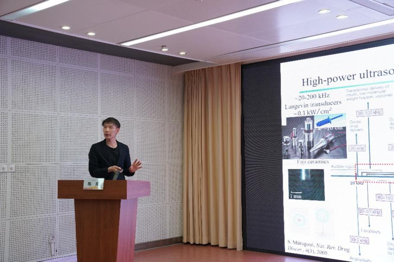 K1体育青年教师陈康博士作了题为《高功率 MHz 频带超声换能器(DPLUS)在生物医学方面的应用》的报告。他分别从肿瘤热消融治疗、超声显微成像、声镊这三个方面来阐述DPLUS在生物医学方面的应用。他认为,在人工智能的辅助下,DPLUS可实现精准实时判断消融区域、精准判别人体组织病变情况等功能,将为精准诊疗提供核心技术支持。