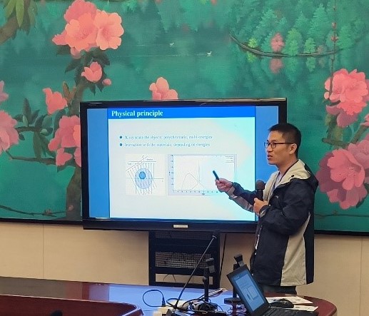 公司罗守胜、葛新洋老师分别在会上作专题报告。罗守胜的报告题目为《基于分割的双能谱CT图像重建模型和superiorized算法》, 他从数学问题入手,重点介绍了superiorized迭代算法的概念、基本思想和当前的最新研究进展。针对传统CT和双能CT图像重建问题,通过模拟数据和实际数据的重建结果说明了模型和算法有效性。