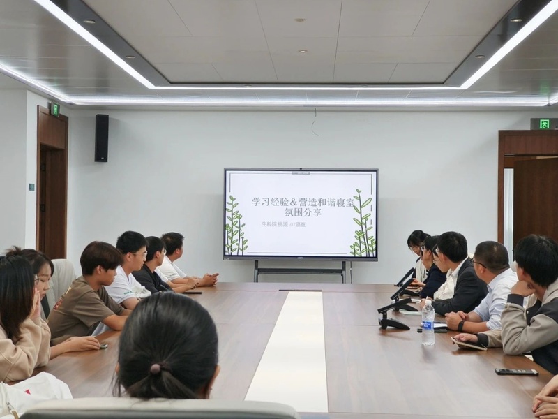会议伊始,生科院桃源107寝室成员作为公司优秀文明寝室代表,从自身经历出发,围绕学习经验和营造寝室和谐氛围两个方面做了相关分享。