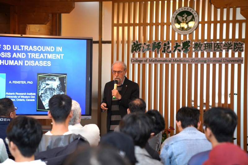 Aaron Fenster教授与Terry Peters教授分别就“三维超声在疾病诊断与治疗中的应用“和“人工智能在图像引导下的介入手术中扮演的角色”这两个主题做了精彩的报告。两位专家围绕超声引导的诊疗模式,结合各自的具体研究方向,从超声数据的采集、分析、智能化,到针对临床痛点的具体实施方案,都做了深入浅出的讲解。
