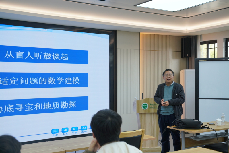 刘教授进一步剖析了反问题研究的核心挑战:不适定性。由于输入数据微小扰动可能导致解的巨大偏差,传统数学方法难以直接应用。对此,他系统介绍了正则化技术的原理,强调通过引入先验知识约束解的稳定性,并结合“海底寻宝”等趣味案例,展示了数学建模如何将抽象理论转化为实际工程问题的有效解法。现场师生通过实例深刻理解了反问题“从现象到本质”的求解逻辑及其在科学探索中的普适性。